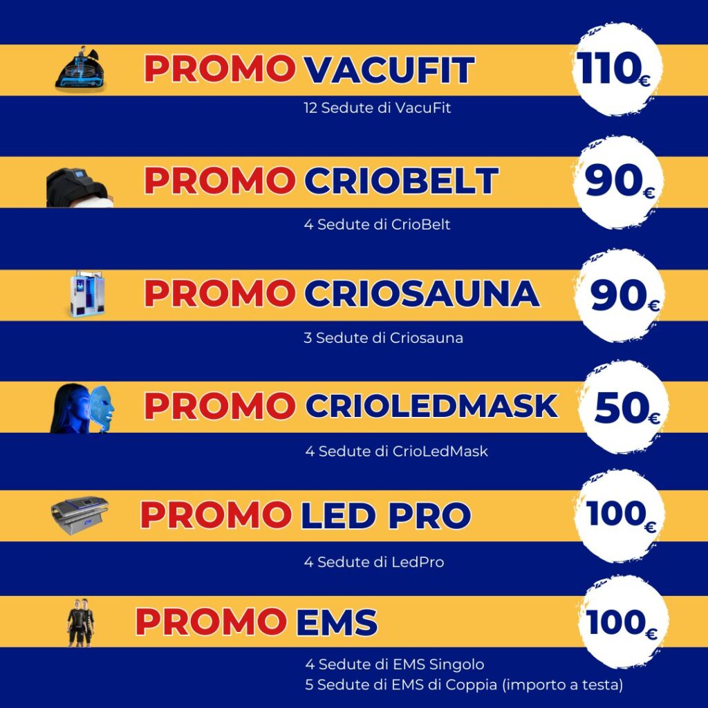 Ad esempio non poteva mancare l’intramontabile VacuFit con la promozione 12 sedute a 110€, ovvero meno di 10€ l’una!